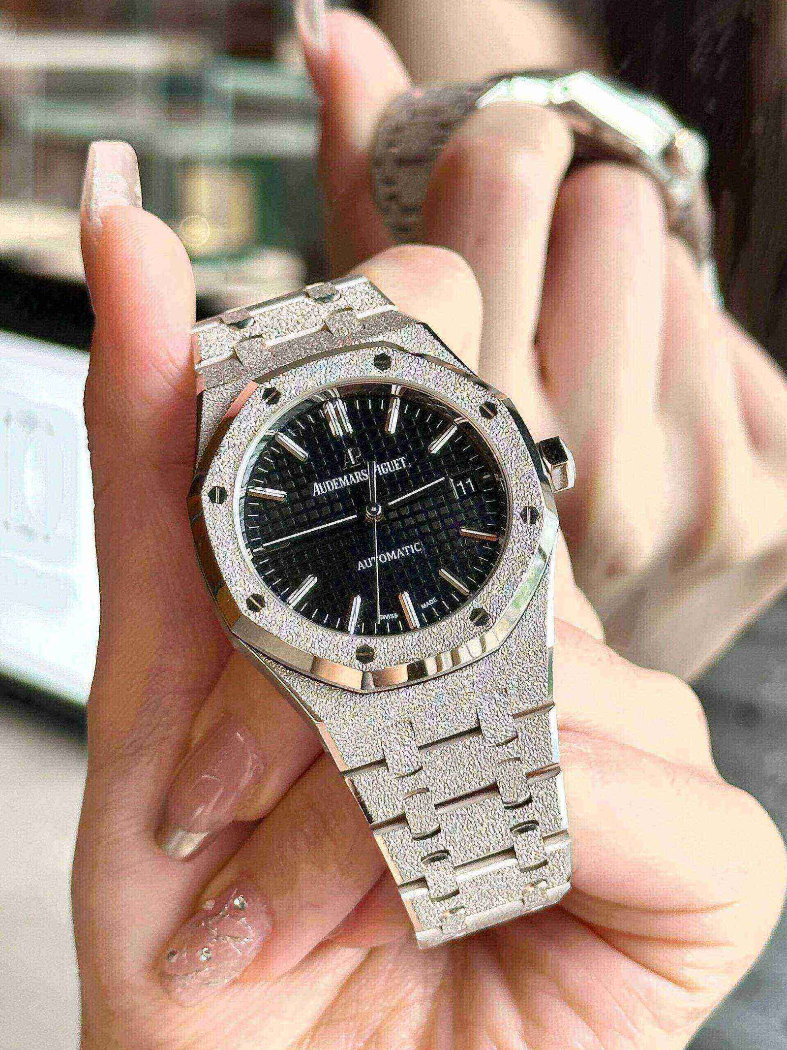 Audemars Piguet Oak Frosted Gold Selfwinding, Black dial, 37mm,White gold, 15454BC.GG.1259BC.03